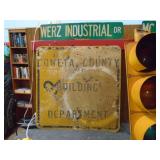 Traffic Light, Real Street Signs, Lot of Old License Plates, Diving Knife, Camera Lens, Bull Dog Ckip Watch, Baking Dishes, Music Boxes, Bud Light Dart Board, Vintage Bottles, Old Lock, Old 1920’s Kilgore Cap Gun, Cobra Walkie Talkies, Pottery Jug, Cotton Scale, Hand Made Arrow, Lots of Books, Golf Clubs, Snorkeling Gear, Fans & Heaters, Several Box Lots, Box of Tools, Box of Automotive Supplies, Home Improvement TV Show Tools, Heavy Duty Body Massager, Vintage PTO for Tractor, Zip Ties, Pump Pressure Switch, Sand Paper, Work Light, Insulation, Chimney Cap, Branch Saw, Portable Fishing Pole and Other Rod & Reel Sets, Drywall Tools, Come-A-Long, Power Tools, Sanders, Drills, Saws and More, Black & Decker Table Top Work Mate, Extension Cords, Lots of Different Wire, Tackle Box, Pulleys, Shrink Wrap, Tubing Benders, Yard Tools, Log Mover, Sickle, Pitch Fork and More, 8’ Florescent Light Fixtures, Roll of Fence, Bucket full of Nails, Several Organizers w/ Screws and Fasteners, Electrical and Plumbing Lots, Dog Life Jacket, Coolers, Seed Spreader, Rifle Scopes, Solid Wood & Glass Doors, Lot of Kitchen Cabinets Floor & Wall, Tradesman Work Bench, Large Extension Ladder, Custom Router Table, 1849 Singer Sewing Machine, Joiner, File Cabinets, Mini Fridge, Table Set, Double Section Metal Shelving, Yard Tool Rack, Tool Boxes, Ridged Pipe Threading Tool Set, Cordless Set of Fire Storm Tools w/ Two Batteries, Battery Charger, Brass Pump, Several Pieces of Chain, Scroll Saw, Shop Vacuum, Cast Iron Muffin Pan, Auto Parts, Old Brass Door Knobs, New Door Handle Sets, Wet Saw w/ New Diamond Blade, Grinder Wheels, Copper Tubing, Electrical Box Enclosure, Drum Pump, Wood Storage Box, Laundry Faucet, New Range Hood, Four Wheeler Tires, Gutter Guard, And Our Four for a Dollar / Free Tables.