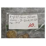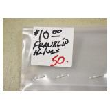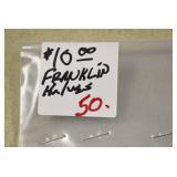 REMINDER: DAYLIGHT SAVINGS TIME STARTS THIS DAY! SUNDAY, March 9th @8:30AM Coins to Sell @1:00PM Coins: 1. 1986 1-Ounce Silver Eagle 2. 2009 1-Ounce Silver Eagle 3. 1987 Silver Constitution Silver Dollar 4. 1787 Connecticut Colonial Coin 5. 1986 1-Ounce Silver Eagle – GEM BU 6. JM 10-Ounce .999 Silver Bar 7. Englehard 50-Ounce .999 Silver Bar 8. Lot of 3 – Barber 25-Cent Pieces – 1895-O, 1900, and 1912 9. Lot of 4 – Standing Liberty 25-Cent Pieces – (2) 1926, 1925, and 1928 10. Lot of Silver Coins – $4.60 Face Value 11. 1721 Spanish 2 Reales – King Phillip V 12. Lot of 4 – Barber 10-Cent Pieces – 1909-D, 1910, 1910-S, and 1915-S 13. Lot of 5 – Barber 10-Cent Pieces – 1900, 1906-S, 1907, 1912-S, and 1914-S 14. 1936 Long Island Commemorative 50-Cent Piece – GEM BU 15. 1989 1-Ounce $50.00 Gold Piece 16. Queen Elizabeth II $2.00 2-Ounce Silver Coin 17. Buyers Choice of (10) Morgan and Peace Silver Dollars 18. Lot of 2 – 3-Cent Nickels – 1865 and 1867 19. Buyers Choice of (7) Barber 50-Cent Pieces – 1908-D, 1908-S, 1909, 1910, 1911-S, 1912-S, and 1915-D 20. Lot of 4 – Indian Head Cents – 1864, 1889, 1891, and 1907 21. Lot of 4 – Mercury Dimes – 1936-D, 1937-D, 1938-D, and 1938-S 22. 1916 Mercury Dime – BU 23. Lot of 7 – 1945-S Mercury Dimes – BU 24. 1876 Indian Head Cent 25. 1913 $5.00 Gold Indian 26. 1986 $50.00 Gold Eagle 27. Franklin Halves – $10.00 Face Value 28. Walking Liberty Halves – $10.00 Face Value 29. 1964 Kennedy Halves – $10.00 Face Value 30. 1864 2-Cent Piece – VF 31. 1858 3-Cent Silver Piece – VF 32. Pair of Seated Half Dimes – 1839 and 1842 33. 1820 Bust 10-Cent Piece 34. Pair of Liberty Seated 10-Cent Pieces – 1854 and 1862 35. 1854 Liberty Seated 25-Cent Piece 36. Lot of 6 – AU/BU Washington 25-Cent Pieces – 1945, 1946, 1947, 1948, 1949, and 1949-D 37. 1932 Washington 25-Cent Piece – AU 38. Buyers Choice of (11) Peace Silver Dollars 39. Buyers Choice of (10) Morgan Silver Dollars 40. 1895-O Morgan Silver Dollar 41. 1892-S Morgan Silver Dollar 42. 1888-S Morgan Silver Dollar 43. 100-Ounce Engelhard .999 Silver Bar w/Hidden Compartment Book 44. 1916 50-Cent Walking Liberty 45. 1916-D 50-Cent Walking Liberty 46. 1917-S Obverse 50-Cent Walking Liberty 47. 1918-D 50-Cent Walking Liberty 48. 1938-D 50-Cent Walking Liberty 49. 1947-D 50-Cent Walking Liberty – PCGS MS65 50. Franklin Halves – $10.00 Face Value 51. 1964 Kennedy Halves – $10.00 Face Value 52. 1993 Proof $1.00 Silver Eagle 53. 1914 $2.50 Gold Indian – PCGS XF45 54. 1900 $20.00 Gold St. Gaudens – BU 55. Replica of 1861 Confederate Half Dollar 56. Pair of 1861 Indian Head Cents 57. Pair of Flying Eagle Cents – 1857 and 1858 58. Lot of 4 – Large Cents – 1817, 1828, 1845, and 1846 59. Lot of (20) Various Local Tokens and Lucky Pennies 60. Lot of (16) Various “Love” Tokens – Mostly Silver Coins 61. Lot of (16) Various Gettysburg Tokens and Lucky Pennies 62. 1983 1-Ounce Gold Krugerand 63. 1964 Kennedy Halves – $10.00 Face Value 64. Lot of Assorted Foreign Coins and Currency 65. Lot of Assorted Wheat Pennies, Buffalo 5-Cent, Large Cent, Liberty Nickels, Indian Cent, 1806 British Coins, and Other 66. 1988 United States Mint Prestige Set 67. 1988 America in Space Shuttle in Flight 3-Coin Set – 90% Gold 68. 2023 American Double Eagle 3-Ounce .999 Silver Coin 69. 2021 Silver Proof Set 70. 2018 China Emperor 5-Ounce Silver Piece 71. 1892 Carson City Morgan Silver Dollar 72. 1889 Morgan Silver Dollar – NES MS65 73. Mint of Poland Faberge Art .999 Silver Red Table Clock Coin 74. 1999 Silver Proof Set 75. 2015 5-Ounce Ultra Cameo 1876 Liberty 76. 1875 Seated Liberty 50-Cent Piece 77. Buyers Choice of (4) Morgan Silver Dollars – 1902, 1894, 1878, and 1885 78. Lot of (5) Indian Head Pennies – 1905, 1906, 1907, 1908, and 1909 79. 18KY Alexander The Great Necklace Pendant 80. 1989 Proof West Point Mint $50.00 1-Ounce Gold Piece 81. 1938-D Buffalo Nickel – MS65 82. Buyers Choice of (22) Walking Liberties 83. Buyers Choice of (2) Cased Sets of All 50 States Quarters 84. Buyers Choice of (10) 1964 Proof Sets – All are Philadelphia 85. 2008 American Buffalo $5.00 1/10th Ounce Gold Piece 86. Buyers Choice of (18) Morgan Silver Dollars 87. Assorted Coin Lot – $46.50 Face Value 88. Buyers Choice of (16) 1985 American Silver Eagles 89. Buyers Choice of (5) 2011 United States Mint Silver Proof Sets 90. 2011 Medal of Honor West Point Mint $5.00 Gold 91. 5 Troy Ounces .999 Silver Aztec Calander 92. 1/20th Ounce Silver Liberated Angel Coin 93. Buyers Choice of (2) 1923 Peace Dollars – MS64 94. 1883 Morgan Silver Dollar – MS66 95. 1878 Carson City Morgan Silver Dollar 96. 2010 America The Beautiful 5-Ounce Silver Yosemite National Park Coin 97. 2011 America The Beautiful 5-Ounce Silver Glacier National Park Coin 98. 2013 America The Beautiful 5-Ounce Silver Mount Rushmore Coin 99. 1986 Liberty Coin Set – Silver Dollar is 90% Silver 100. 1987 $50.00 1-Ounce West Point Mint Gold Piece 101. Complete Book of 1948 to 1963 Franklin Halves – 35 Total Silver Coins 102. 1938-D Buffalo Nickel – MS65 103. Buyers Choice of (20) 2008 American Silver Eagles 104. Buyers Choice of (24) Peace Dollars 105. Buyers Choice of (16) Morgan Dollars 106. 2009 Proofed Overstrike 1-Ounce Mint State Silver Eagle – Privately Minted 107. Farmers Bank of Bucks County Un-Cut Sheet – (2) $1.00, (1) $3.00, and (1) $2.00 108. 2015 March of Dimes Special Silver Set 109. 1994 Vietnam Veterans Memorial Silver Dollar 110. 1987 $50.00 1-Ounce West Point Mint Gold Piece 111. Lot of (250) Wheat Pennies 112. Buyers Choice of (21) Peace Dollars 113. 2008 American Buffalo 1/10th Ounce Gold Proof Coin 114. 1990 Eisenhower Silver Proof Dollar 115. 2000 Leif Ericson Millennium Commemorative Coin Set 116. Stone Mountain 50-Cent Commemorative Coin 117. Lot of 4 – Indian Head Pennies – 1904, 1905, 1903, and 1908 118. Lot of 6 – Indian Head Pennies – (4) 1863 and (2) 1862 119. L