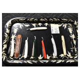 Antiques and Collectibles: Martin B. Breneman Washington Township York County PA Afghan, 9 Hall Pottery Pitchers, Pottery Crocks and Jugs, Indian Net Stones, Indian Arrowheads, Ornate Mantle Clocks, Large Amount of Straight Razors (Many w/Cases), Large Amount of Collectible Tools, Advertising Items, Vintage Scales, Vintage Pop-Up Dolls, Copper and Brass Items, Vintage Cameras, Chaney Combination Thermometer, African Flyswatter, 1998 Ron Lee No. 263 of 750 Hobo Clown Figure, Bowed Psaltery, Carved Wooden Figures, Collectible Toys, Truck Banks, GI-Joe Dolls, Vintage Films, Belt Buckles, Vintage Microscope w/Case, Old Books, Cast Dog Doorstop, Cast Figures, S.S, White Dental Co. Complete Set of Steel Teeth Forms, Cigarette Kiosk Dispenser, Railroad Pullman Cast Iron/Porcelain Coach Sconce Light, Central America Ashtray, Brass Hindu Holy Water Spoon, Vintage Camel Skin Lamp, Olympia Type Writer, Folding Rules, Galvanized Items, Zippo Lighter, Advertising Thermometers, Large Amount of Beer/Bar Advertising Signs, Large Heron Lladro Figure, Vintage Bottles, Limoge Occupied Teacups, Bone China, Royal Sealy Teacups, Framed Prints and Pictures, Marble Top Dresser w/Mirror, Roll Top Desk, Blanket Chests, and Other