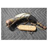 Jewelry: Sterling 1941 America First Committee Ring, Mothers Cross Necklace w/1794-1824 Date Inscribed on Reverse Side, Various Sterling Rings, 10K 1965 LHS Lakeland High School Class Ring, 10K Childs Ring, Wrist Watches, and Other Invecta Watches: Invecta Chronograph Pro-Driver Model 13686 Mast of the Oceans Watch, Invecta Chronograph Coalition Forces Model 22277 WR-300-MT Watch, Invecta Chronograph Subaqua WR-500-MT Watch, Invecta Excursion Model 10906 WR-200-MT Watch, Invecta Excursion Model 25719 WR-500-MT Watch, Invecta Reserve Venom Model 20405 WR-1000-MT Watch, Invecta Subaqua Model 26277 WR-300-MT Watch, Invecta Model 23991 WR-100-M Watch, Invecta Reserve Model 21641 WR-500-MT Watch, Invecta Model 17340 No. 002494 Watch, Invecta Chronograph Subaqua Model 23934 WR-500-MT Watch, and Invecta Force Model 19183 WR-300-MT Watch Pocket Watches/Wrist Watches/Compass: Elgin Watch Co. Marked George Cassaday Open Face Pocket Watch w/Wadsworth Watch Case, Elgin Watch Co. Open Face Pocket Watch w/Philadelphia Watch Case, Elgin Watch Co. Open Face 7 Jewels Seepter Watch Case Co. Pocket Watch w/Chain and Knife, Elgin Watch Co. Open Face 7 Jewel Pocket Watch w/Silverode Watch Case, Wittnauer Compass, 14K Gold Filled Waltham Watch Co. Wrist Watch, Elgin Watch Co. Open Face Pocket Watch w/Engraved Fahy’s Watch Case (Missing Key), Elgin Watch Co. Open Face Pocket Watch w/Deiber Watch Case, Waltham Watch Co. Open Face Pocket Watch w/Engraved Silverode Watch Case, Elgin Watch Co. Open Face 15 Jewel Pocket Watch w/Engraved Wadsworth Case, Elgin Watch Co. Open Face Pocket Watch w/Philadelphia Watch Case, Elbon Watch Co. 17 Jewel Open Face Pocket Watch w/Winton Watch Case, 14K Elgin Watch Co. 15 Jewel Closed Face Pocket Watch w/Engraved Keystone Watch Case, and Doxa Swiss Made Cased Pocket Watch w/1914 Iron Cross Attached Bronze Figures: Pair of Bronze Bust Bookends of Composer Richard Wagner, Heredities Cold Cast Bronze “Naughty Dog”, and Vintage Crucifix Bronze Statue of Jesus By Milo Camel Bone Pictures: (3) Antique Persian Camel Bone Hand Painted Gaming/Horseback Scene, Persian Indian Hand Painted Mughal Camel Bone Picture, Persian Camel Bone Hand Painted Hunting Scene, Antique Persian Suratgari Camel Bone Hunting Scene in Marguetry Mosaic Khatam Frame, and Antique Persian Suratgari Camel Bone Hunting Scene in Marguetry Mosaic Khatam Frame Cast Match Case Holders: Double Drum Match Case Holder, M.A. SUY D. AM & Co. No. 11 East Town Street Telephone 180 Match Case Holder, Michigan Stove Co’s Stoves are the Best Detroit-Chicago-Buffalo Match Case Holder, Horace Greeley Match Case Holder Made During 1872 Presidential Campaign, Ornate Match Case Holder, Circa 1870 Cast/Metal Double Match Case Holder w/Rabbit, Game Bird, Possibles Bag, and Gun, Free Standing or Wall Mount Match Case Holder, Unusual “Safety” 3-Piece Match Case Holder, Match Case Holder, Very Ornate Bronze/Iron Helmet Match Case Holder, Wall Mount Match Case Holder, and O. Parker Pat. April 14 1833 Match Case Holder Inkwells: Jennings Brothers Bronze Inkwell, Jennings Brothers Brass Inkwell, Brass Double Inkwell, and Napoleonic Brass/Marble Double Inkwell w/Cherub Figure Railroad Lanterns and Lamps: B&O Handlan St. Louis 4-Way Kerosine Switch Lantern w/3 Blue Shades, 1 Red Shade, Mounting Bracket and Dressel Burner, Complete Tin 3-Shade Kerosine Signal Lamp w/Ruby, Blue, and Clear Rotating Lenses, Complete Heavy Tin Hand-Held Kerosine Lamp w/Heavy Fractured Glass Reflector and Multi-Colored Lenses, B.R.(M) Railroad Signal Lamp in Original As-Found Condition w/Clear Glass Lense and Correct Burner, Dressel 4-Way Electric Switch Lantern w/3 Orange Lenses, 1 Red Lense, and Mounting Bracket (Electrified for Display Purposes), Complete Large Vintage Heavy Spotlight Kerosine Lantern w/White Paint and Kerosine Burner, 14½” High Large Vintage Heavy Spotlight Kerosine Lantern in Original Condition w/Burner, and British Railroad Adlake 4-Way Electric Signal Lamp w/3 Blue Lenses, 1 Red Lense, and Mounting Bracket Animal Traps: Victor Double Long Spring Trap, Triumph Trap Co. No. 415-X High Grip Toothed Trap, Blacksmith Made Toothed Bear Trap w/Touchmark G.S., and Other Various Animal Traps Collectible Knives: 3-Knife Gurka (Kukri) Knife w/Sheath, U.S.M.C. Ka-Bar Knife w/Sheath, WWII Theater Knife, Ideal Arkansas Toothpick Knife w/Sheath, WWII German Dug Fighting Knife, German 98K Dug Relic, Case XX Tested Knife, Schrade Old Timer No. 152 Knife w/Sheath, Remington Knives, Large Amount of Various Folding, Pen, and Sheath Knives, and Other Military Related: Hand Stitched 42 Star Flag, 6¾”x10” Hand Stitched 48-Star Flag, Swords, Military Pins, Badges, Medals, Buttons, and Patches, WWII German Officer Collar Board, U.S. Marked Nordac Mfg. Leather Holster, Large Shells, Flags, Old Military Photographs, German Military Field Phone Case, Childs Non-Combat Gas Mask, German Arm Badge, 1939 German Iron Cross, Pair of German Late War Arm Bands, Military Trenching Shovels, 3rd Reich NSKOV Member Badge, German NSKK Drivers Sleeve Insignia, Pre WWII Helmet Membership Pin, Frederick the Great Prussian Commemoration Broach, WWII German GAU Tag “Tinnie Badge”, Third Reich NSBO Party Pin, 1933 German Iron Shirt Pilgrimage Cross Tier Pin, Flight Glasses w/Case, German P-38 Leather Pistol Holster, Military Uniform Coat, Military and Vintage Ammunition, Vintage Powder Horns and Flasks, and Other Winchester Collectibles: Winchester Hatchet, Winchester Flashlights, Winchester Hand Plane, Winchester No. 1002 Monkey Wrench, Winchester Roller Blades, Winchester No. 3075 Hand Plane, Winchester Gun Oil Target Can, Winchester No. 6605 Mashie Golf Club, and Other Sportsman and Fishing Related: Game Commission Patches, Modern Ammunition, Gun Powder, Marbles Cleaning Rod, Gun Research Books, Cleaning Kit, Gun Catalogs, Leather Holsters, Vintage Fishing Reels, Vintage Fishing Lures, Travel Fishing Pouch, Matching No. 765 1895-1995 Resident and Non-Resident Hunt