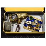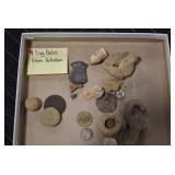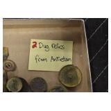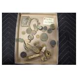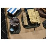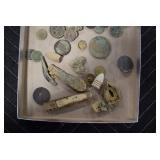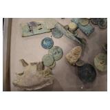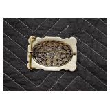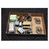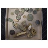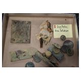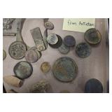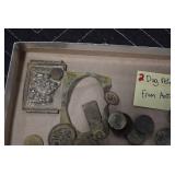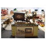 Antiques and Collectibles: 50+ Various Harley Davidson and Other Belt Buckles, 10 Lots of Vintage Postcards, Vintage Letters, Old Photographs, Vintage Holiday Cards, United States Mint and Proof Sets, Paper Money, Various Coins, Remington Bronze Statue of Horse and Cowboy Reading, C.M. Russel “Free Trapper” Bronze Statue, John Deere Collectibles, Figurines, Lighters, Costume Jewelry, Bolo Ties, Collectible Clocks, Vintage Tin Advertising Signs, Advertising Thermometer, Indian Arrowheads, Pottery Crocks and Jugs, Pottery Bowls, Old Christmas Ornaments, Tools, Framed Prints and Pictures, Avon Glass Lady Figurines, Lenox Dinnerware Sets, and Other