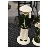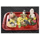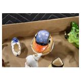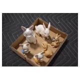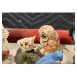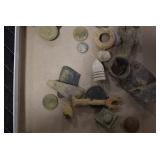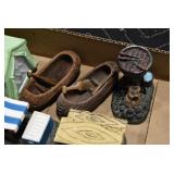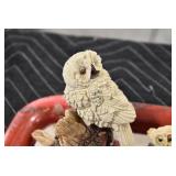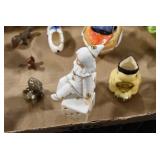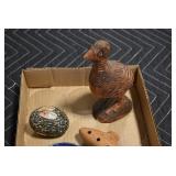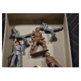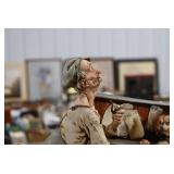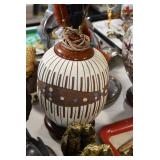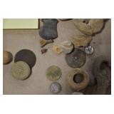 40+ Lots of African Items: Carved Wooden Villager Fisherman, Carved Wooden Villager Book Ends, Hand Carved Bust Figures, Hand Carved Turtle, Carved Bone Items, Carved Trays, Woven Baskets, Carved Bowls, Carved Utensils, and Other