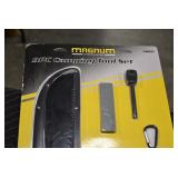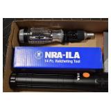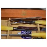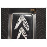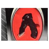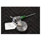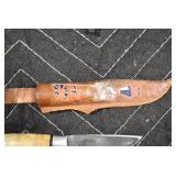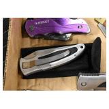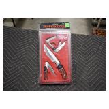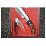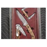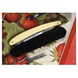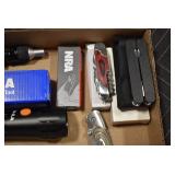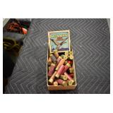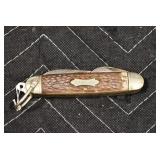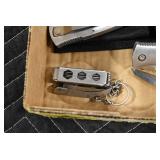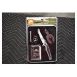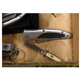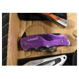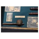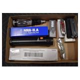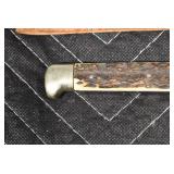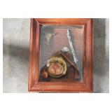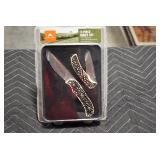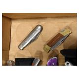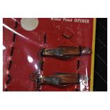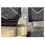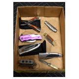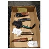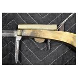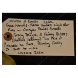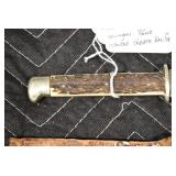 Sporting Related: Unwin & Rogers 32 Caliber Bone Handled Black Powder Single Shot Pistol, Large Amount of Folding, Pen, and Sheath Knives, Knife Sets, Dug Relics, BB Guns, Deer Antlers, Pocket Pal Pocket Knife Display w/2 Pocket Knives, Ammunition, and Other