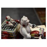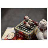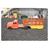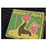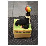 Collectible Toys and Trains: Eska John Deere Pull-Type Combine, Vintage Circus Seal Toy, Diecast Toy Tractor Trailers, Toy Truck Banks, Tonka Toys, Toy Tractors, Vintage Tin Toys, 32 Lots of Train Engines, Tenders, and Cars, and Other