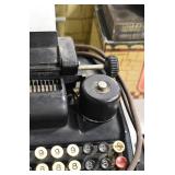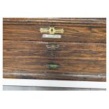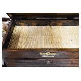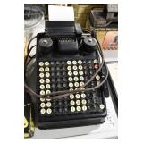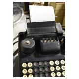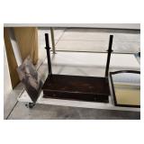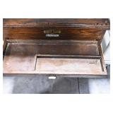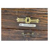 Furniture and Related: 27-Drawer File Cabinet, Cedar Blanket Chest, Victor Victrola, Queen Sewing Machine on Stand, Drop Leaf Tables, Wooden Barrel, Vintage Wooden Baby Cradle, Ross Bicycle, Small Sentry Safe, Wooden Porch Rockers, Wooden Bench, Various Chairs, Tables, Stands, and Other