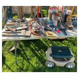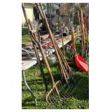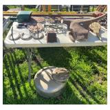 patio wood glider & swing, birdcages, patio chairs and tables,