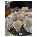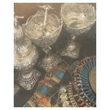· Silver, silver plate and some sterling, a fine selection of lovely pieces large and small. · China, many sets, fancy including Hutschenreuther, Limoges, Lenox, more · Lamps, lighting, chandeliers · Gorgeous Books, including sets of leather bound, hundreds of books…. · Fine furniture, including bedroom sets, sofas, side chairs, carved chairs, ottomans, china cabinets, dining table and chairs, bar stools, benches, and more.. · Art, painting, prints, mirrors, wall décor, clocks, etc. · Beautiful small boxes, enamel and porcelain, Asian, cloisonné, decorative items · Crystal, stemware, decanters, glassware, glass and crystal figurines.. · Linens for the elegant table, fine bed linens, pillows, more. · Kitchen, some general small appliances, glassware, serving pieces. · Patio, outdoor furniture, chairs, tables, etc. · Assorted area rugs