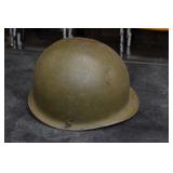 82. WWII Japanese Type 90 Helmet – Battle Damaged – Post-War Souvenir Painted