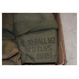 53. 500 Count of 30 Carbine Ammunition on Stripper Clips and Bandoliers w/Ammunition Can – Will Not Ship Due to Weight