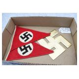 8. WWII German NSDAP Pennants and Pressed Paper Swastika