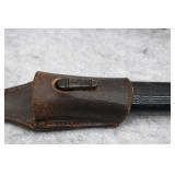 502R. Japanese – Type 14 Nambu – 8mm Nambu Cal. Semi-Auto Pistol – w/4 5/8” Barrel w/Blade Front & Notch Rear Sights – Military Finish – w/Grooved Wooden Grips – w/Detachable Magazine – w/Correct Period Leather Holster, Note: Inner Flap of Holster for Ammo Storage is Only Holding on by a Few Threads, Very Fragile! – Mfg. Dec. 1943 – Serial #4368 (C&R or FFL Required)