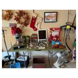 We are having a great big sale next weekend with a house full of modern furniture. Here are a few special items that I want to mention: a barely used air hockey table (so much fun to play); 1930's Singer sewing machine; small spinning wheel; many Dept. 56 Snow Village houses; new-in-a-box car, roof rack; window air condition unit; old horse collar mirror; antique butter churn; nice cedar chest with copper straps; beautiful, mahogany lady's writing desk with the top decorated with leather; large snowman yard decoration; and so much more.