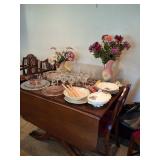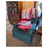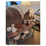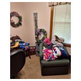 Items being offered include: Flexsteel sofa; Flexsteel sleeper sofa; 2 reclining wing chairs; 3 recliners; several occasional chairs; power lift recliner; two LG tvs; TV stand; end tables; dining table with 6 chairs, pads and leaves; china cabinet; desk; computer desk; oak corner cabinet; book shelves; Bassett bedroom set with queen bed, dresser, chest and nightstand; bookcases;vintage blanket chest; vintage glassware; Haviland china; Vintage Community silverware service for 16 in Milady pattern; large set of Revereware cookware; nearly new microwave; linens; vintage rag rugs; men's and women's clothing and coats; LOTS of holiday decor; 9 piece wrought iron patio furniture set; yard decor; Snapper snow blower; yard tools; lots of nice fishing rods, reels and tackle; tools and LOTS, LOTS MORE!!! Everything is in very well cared for condition.