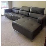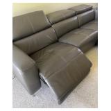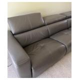 grey leather sectional sofa with power recliner & adjustable headrests,