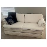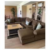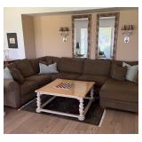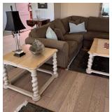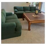 upholstered sofa & love seat, coffee table 47 1/2" square,