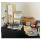LPs & 45s, CDs, Philips 212 turntable and other electronics,
