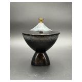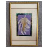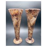 Art glass pieces including signed trumpet vase, mosaic vases, egg prints