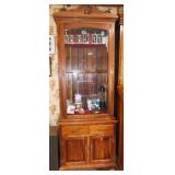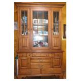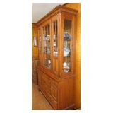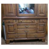 | American Cabinet Bob Timberlake for - J.C. Penny - Oak Break Front Cupboard - Glass and Paneled Doors - Glass Shelves Inside - Lighted with Mirrored Back - Base with Dovetailed Drawers and 2 Cabinets with Raised Panel Doors - Cabinet Measures 83 1/2" Tall 52" by 18" - NO CONTENTS |