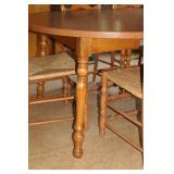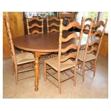 | Walter Wabash Mid Century Dining Table and 6 Chairs - Maple Frame with Maple Finish Formica / Laminate Top - 6 Matching Maple Dining Chairs with Rush Seats - As Pictured with 2 Leaves Inserted - Table Measures 29 1/2" Tall 72" by 48" - Leaves are each 11 3/4" |