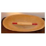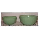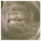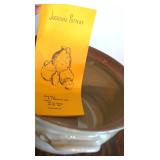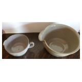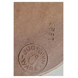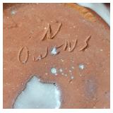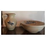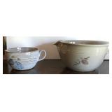 | 2 Jugtown North Carolina Pottery Bowls - Larger Batter Bowl Dated 187 - Smaller V. Owens with Handle - Largest Bowl is 5" Tall 9 1/4" Across |