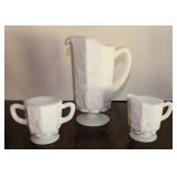 | 1940's Westmorland Glass Paneled Grape Pitcher, Cream, and Sugar - Pitcher Measures 8 1/4" Tall - Pitcher Has Small Chip on Underside of Foot |