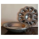 | 2 Pieces of Wilton Armetale " Flutes and Pearls" Oval Bowl and Egg Plate - Bowl Measures 12" by 10" |