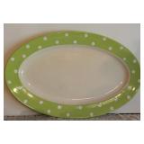 | Spode "Baking Days" 17" Oval Platter Green and White Polka Dot Trim - Like New |