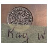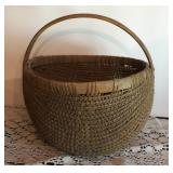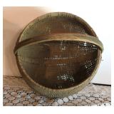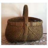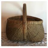 | Very Nice Antique Finely Woven Person County Basket - Hand Hewn Wood Handle - Signed WCW and B on Handle - Some Minor Damaged Areas - See Photo- Egg / Buttocks Basket Measures 6 1/4" Tall 10" by 10" |