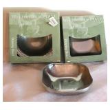 | 3 Wilton Armetale "Dipping Bowls" 2 "Boston" Dipping Bowls - One New in Box and "Flutes and Pearls" Bowl New in Box |