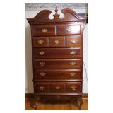 | Athen Furniture Mahogany Finish High Chest - Broken Arch Pediment - Dentil Molding Queen Anne Style Legs - 6 Drawers - Chest Measures 80" Tall |