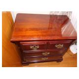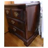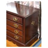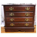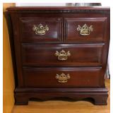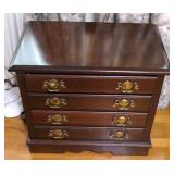 | Mahogany Finish Night Stand / Chest - 4 Dovetailed Drawers - Brass Hardware with Brass Handles on Each End - Beaded Drawer Fronts - Chest Measures 21" Tall 24" By 14" |