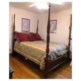 | Athen Furniture Mahogany Finish Queen Size Rice Carved Poster Bed with Nice Biltmore Home Bedding - Comforter and Shams |