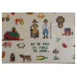 | "As Ye Sow So Shall Ye Reap…" Needle work Cross Stich Signed JL '77 - Framed with Farmer and Wife - Frame Measures 13 1/2" By 20 1/2" |