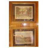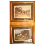| 2 Framed and Matted Fox Hunt Prints - "The Finish by Heywood Hardy" and "Over the Stile by Heywood Hardy" - Both Framed and Triple Matted - Frames Measure 13" by 16 1/2" |