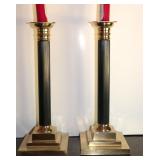 | Pair of Brass Column Style Candlesticks by Valsan Made in Portugal - Each Measures 10" Tall |