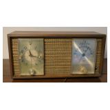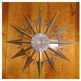 | Awesome "Spartus" Mid Century Modern Sunburst Clock with Wood Grain Accents - Clock Measures 28 1/2" Across |