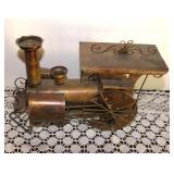 | Vintage Brass Train Engine Music Box -Made in Hong Kong - Train Measures 8" Tall 11" Long |