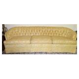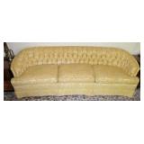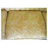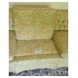 | Great Vintage 1960's Curved Sofa by Bouldin's Inc. High Point, NC - Incredible Button Tufted Back - Yellow Paisley Upholstery - 3 Seat Cushions - Custom Built for Mr. & Mrs. J.E. Whitfield - Couch Measures 93 1/2" Long - Very Clean |