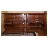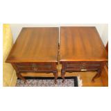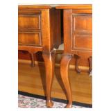 | Pair of "Gallery Collections" Premier Designs by Broyhill Occasional End Tables - Each Table Has Single Double Depth Dovetailed Drawer - Brass hardware - Spade Feet - Tables Measure 22" Tall 26" By 21" - One Has Small Area of Missing Veneer Front Center - |