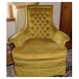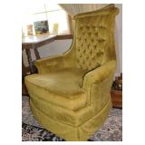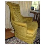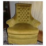 | Great Mid Century Fairfield - Green Velvet Hollywood Style Chair -Button Tufted Seat Back with Rolled Tufted Arms - Skirted Bottom - Chair Measures 38" tall 35" by 30" |