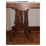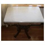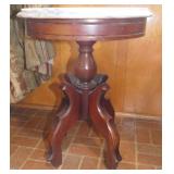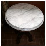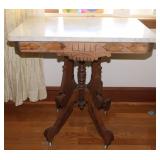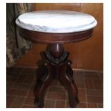 | Walnut Marble Top Plant Stand / Table - White Marble Top- Stand Measures 18" Tall 14" Across |