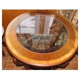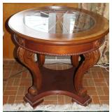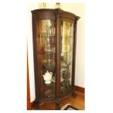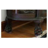 | Round Oak China Cabinet with Large Carved Claw Feet - Column Style Front with Corinthian Capitals - Cabinet Measures 65 1/2" by 39 1/2" |