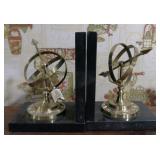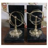 | Pair of Brass and Stone Book Ends - Brass Gyrospheres - Each Book End is 6 1/2" Tall 3 1/2" Wide |