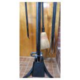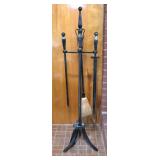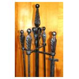 | High Quality Heavy Iron Fire Tool Set - Blacksmith Shop Made - Stand, Poker, Tongs, Broom, and Shovel - Missing Screws that Attach to Handle - Stand is 52" Tall Poker is 35" Long |