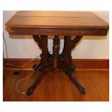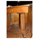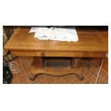| Quarter Sawn Oak Library Table with Drawer - Double Column Legs - Rolled Feet - Table is 29 1/2" Tall 38" by 24" |