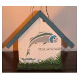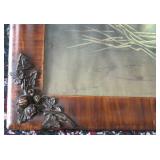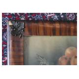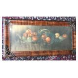 | Turn of the Century Still Life Print in Fantastic Original Frame - Fruit and Fish Bowl Print - Framed with Applied Fruits and Leaves - Frame Measures 16 1/2" By 35" - Small Area Missing From the Corner of 2 Leaves |