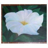 | Pretty Oil on Canvas Painting of White Flower - Signed by Artist Gretchen - Canvas Measures 16" by 20" |