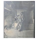 | Antique Print "Lovers" Framed in Black Painted Frame - Frame is 25 1/2" By 21 1/2" |