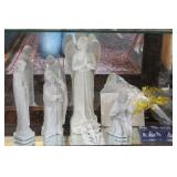 | Shelf Lot Featuring Homco Matte Porcelain Nativity, Unbranded Angel, and Homco Madonna |