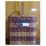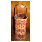 | Nice Large Handmade Oak Splint Basket - Red Dyed Pattern - Hand Painted Heart Accent on Front - Basket Measures 14" Tall 14" By 7" - Not Including Handle |